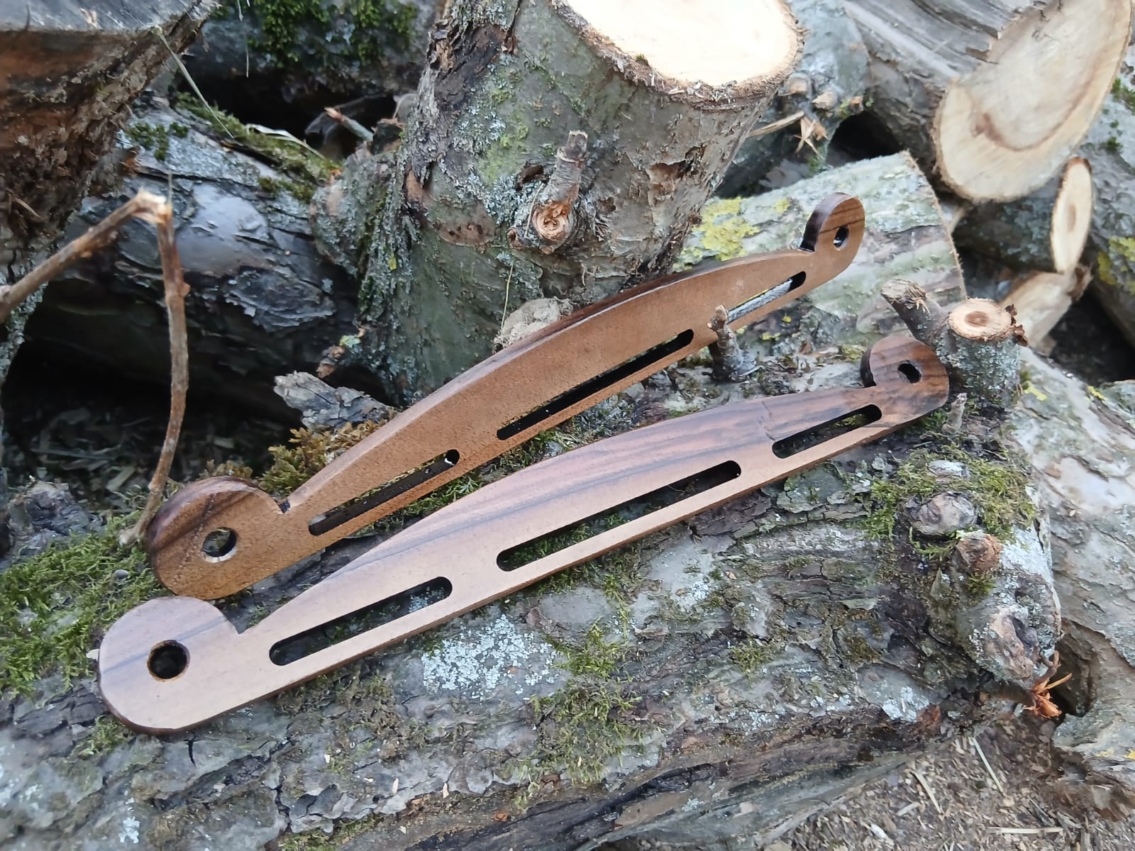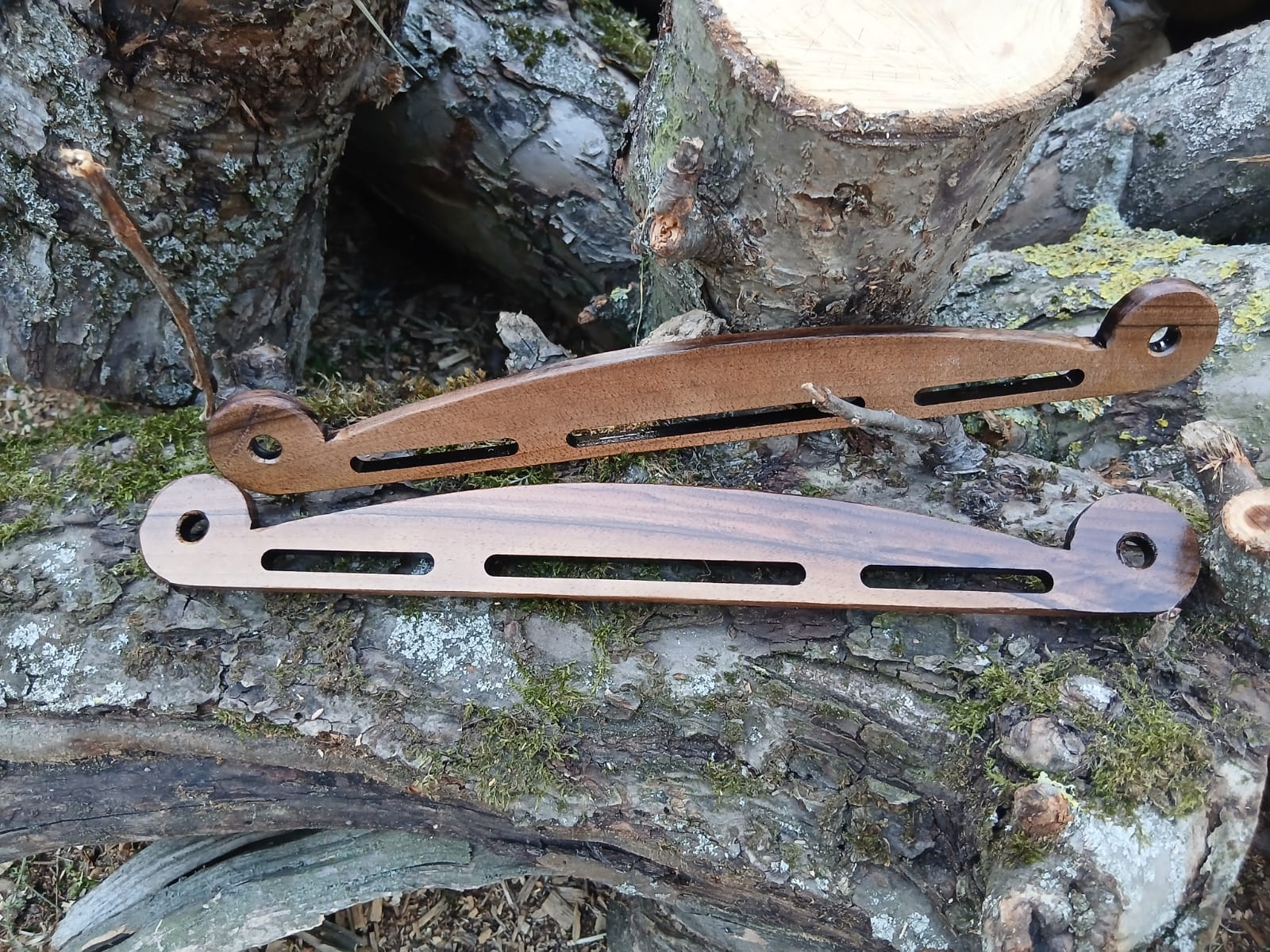 Jedes Paar Bügel ist ein Unikat da es verschiedene Maserungen und Farben enthällt.